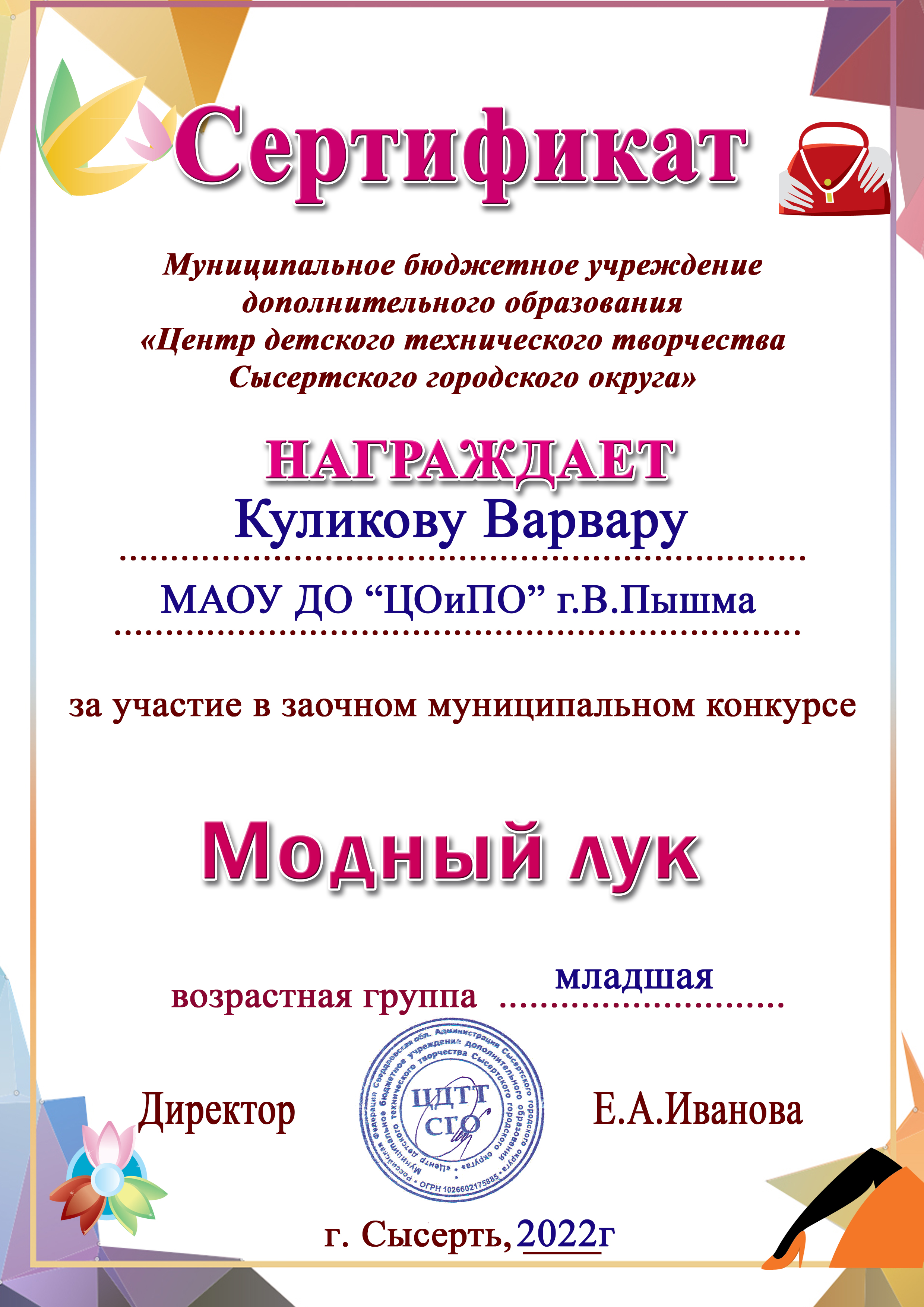 23 декабря были подведены итоги конкурса «Модный лук», который проводил «Центр детского технического творчества» (г.Сысерть).