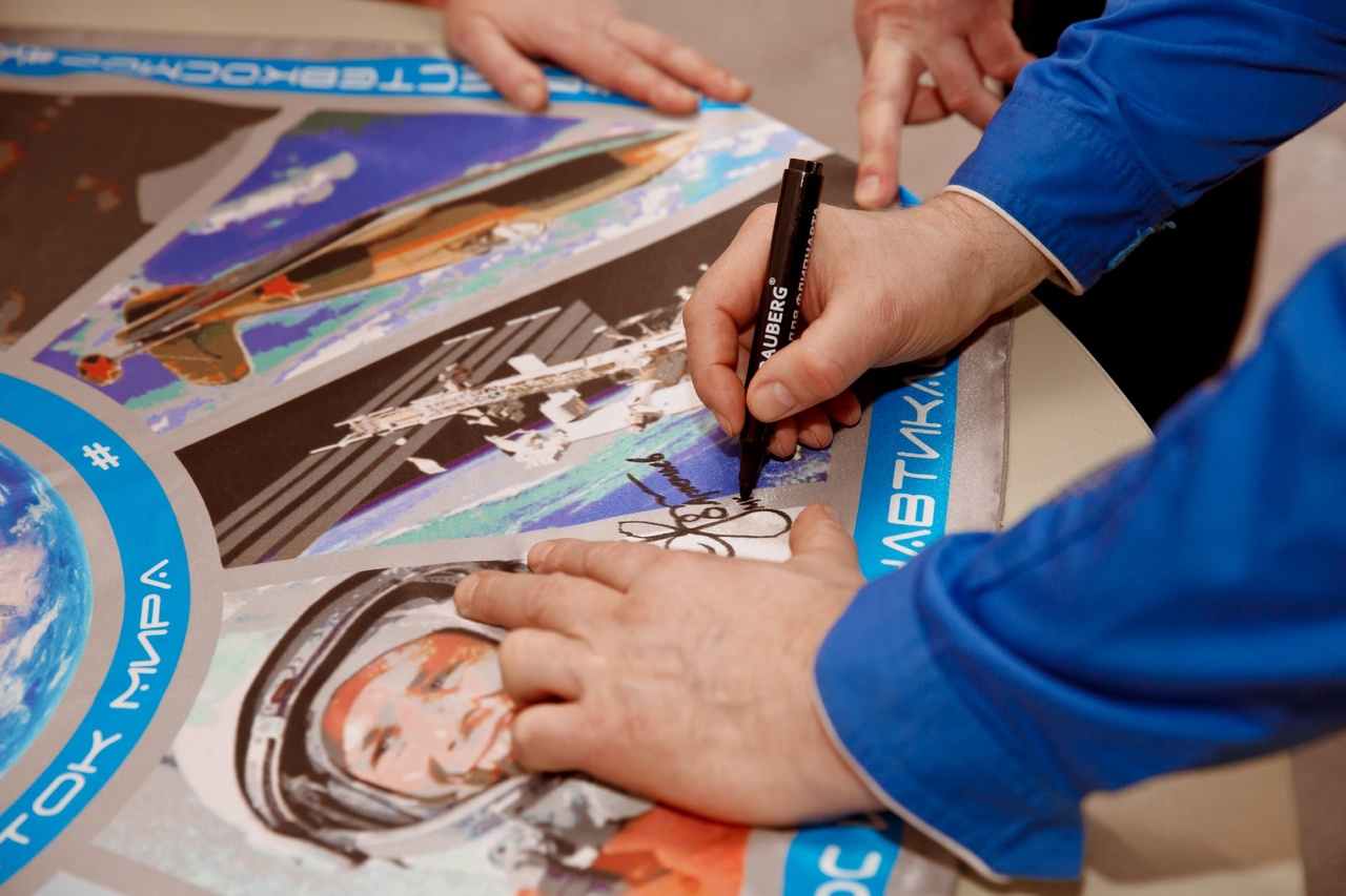 Один из проектов - "Гагаринский платок мира" был передан во время встречи космонавту О.Г. Артемьеву.