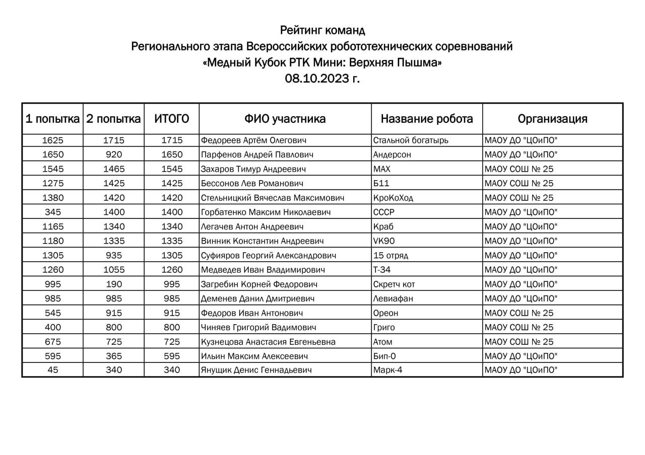 Итоги соревнований по робототехнике