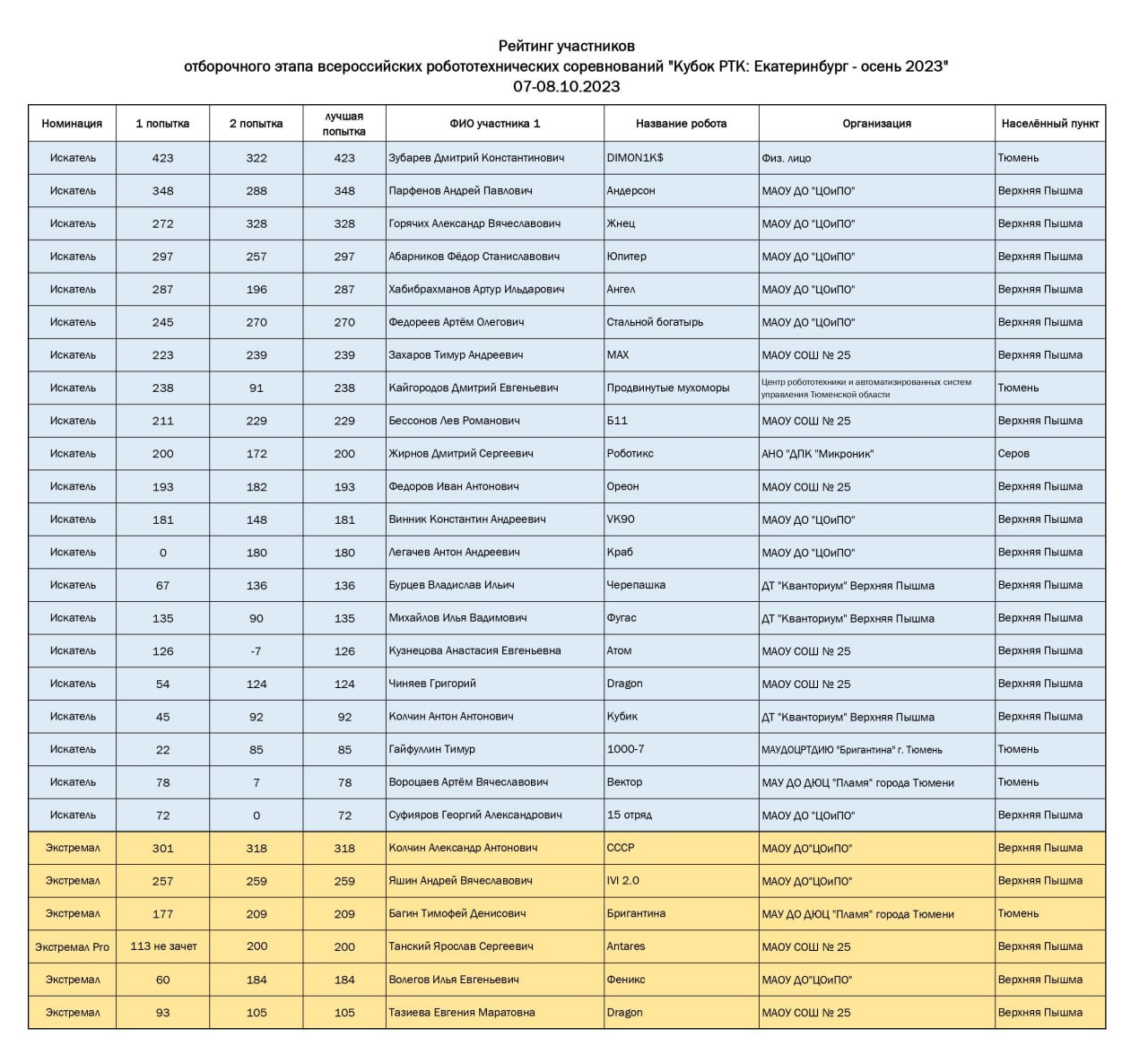 - • 2023 Соревнования по робототехнике "Кубок РТК: Екатеринбург - Весна"