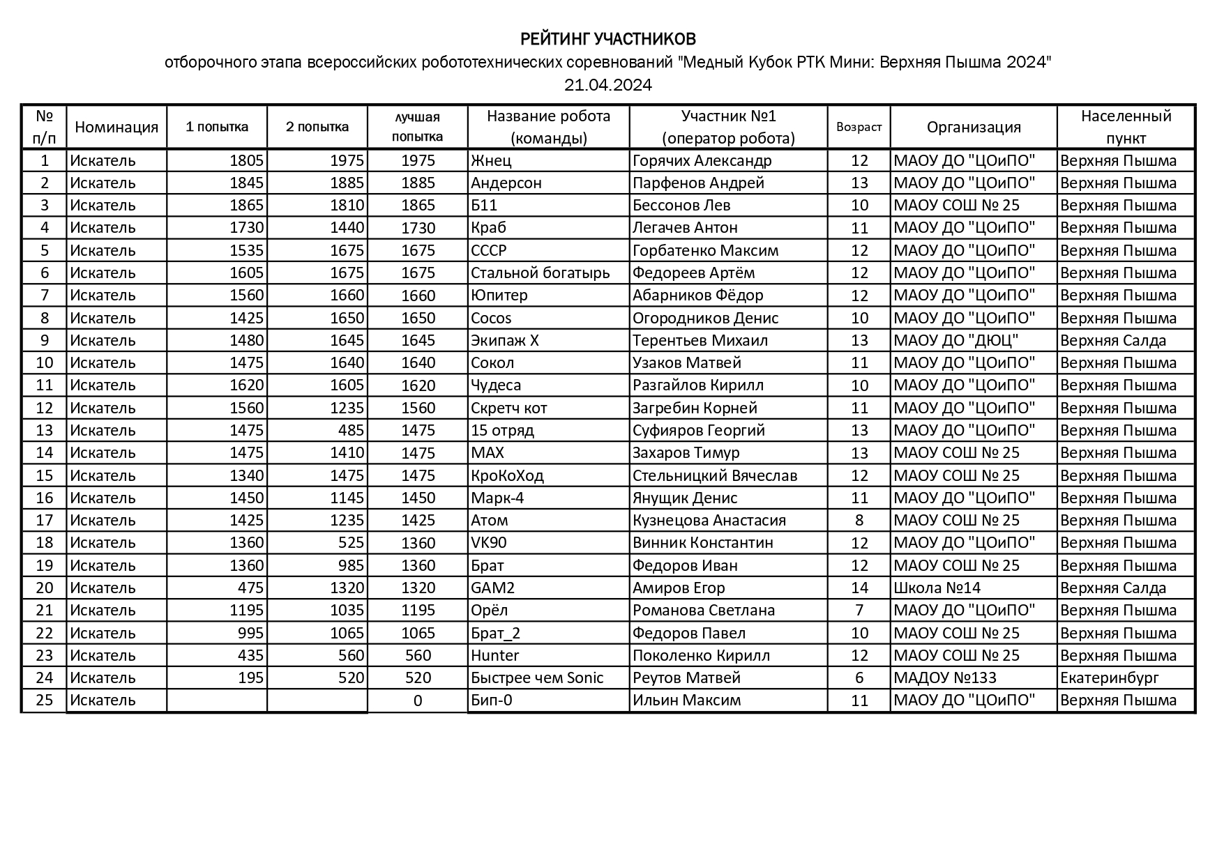 - • Состоялись соревнования по робототехнике Медный Кубок РТК Мини: Верхняя Пышма