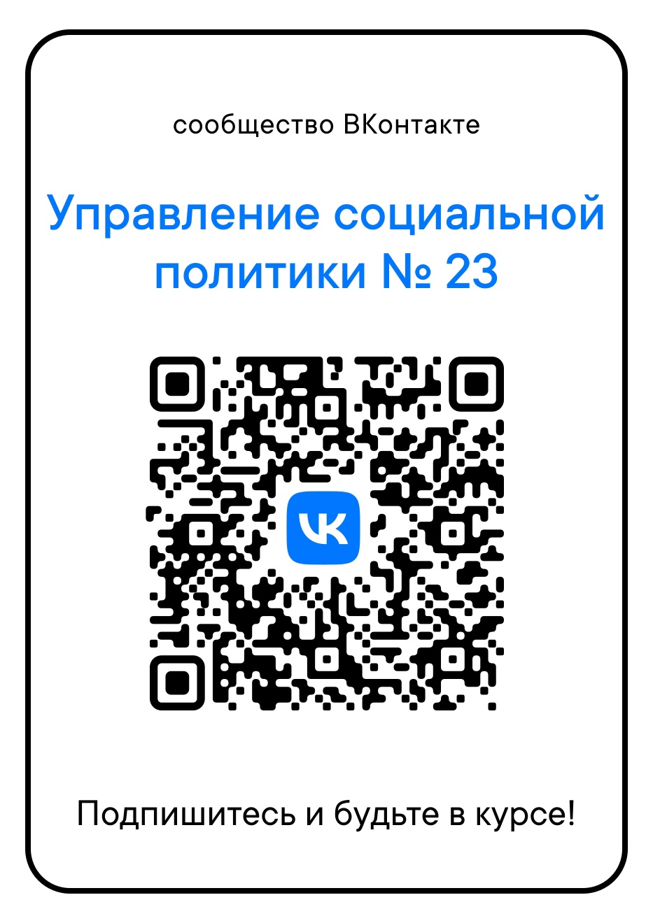 Рекомендуем всем подписаться на официальную страницу Управления социальной политики № 23 в социальной сети «В Контакте».