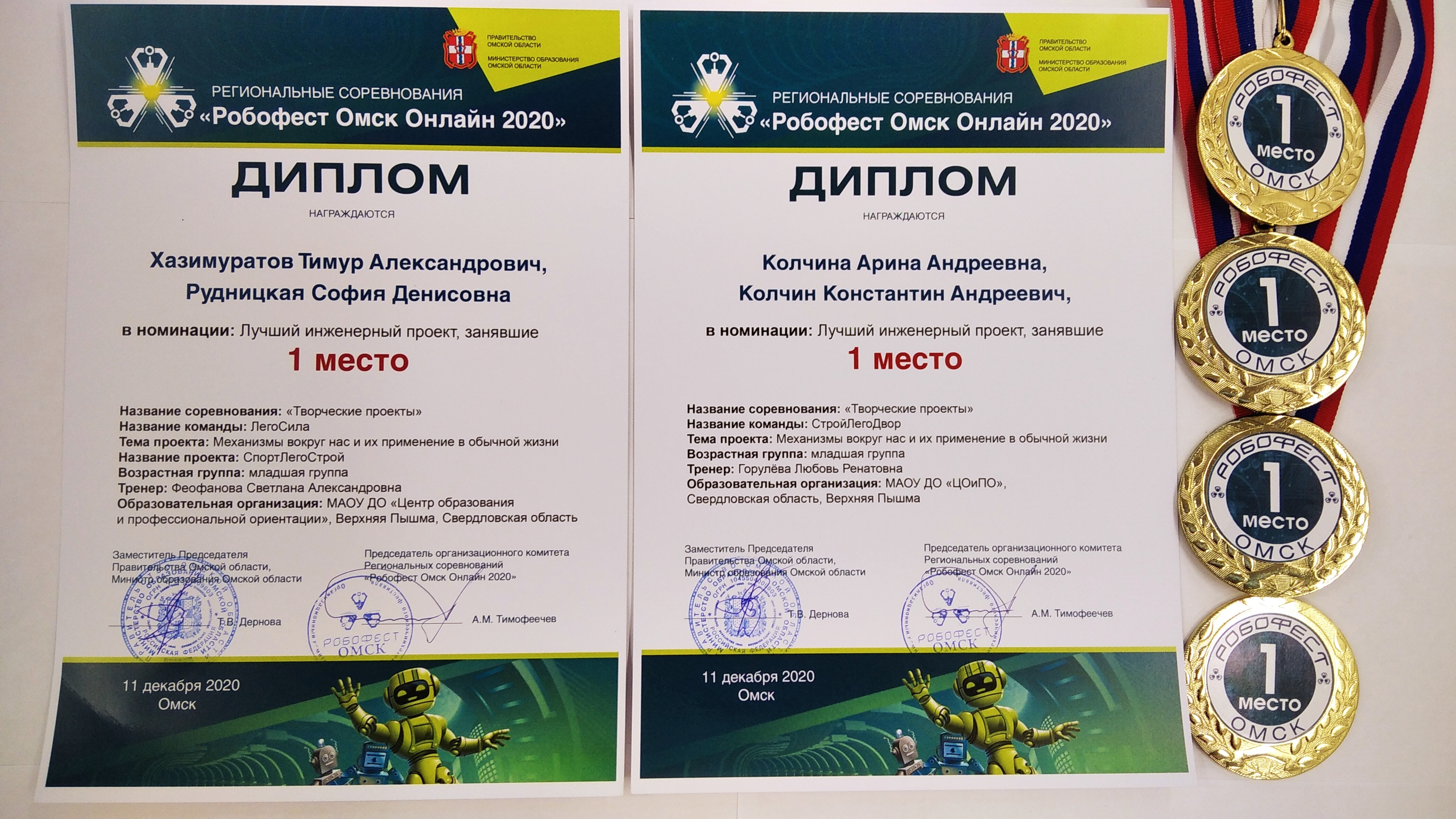 - Команда «ЛегоСила» - Хазимуратов Тимур и Рудницкая София, руководитель: педагог Феофанова Светлана Александровна.