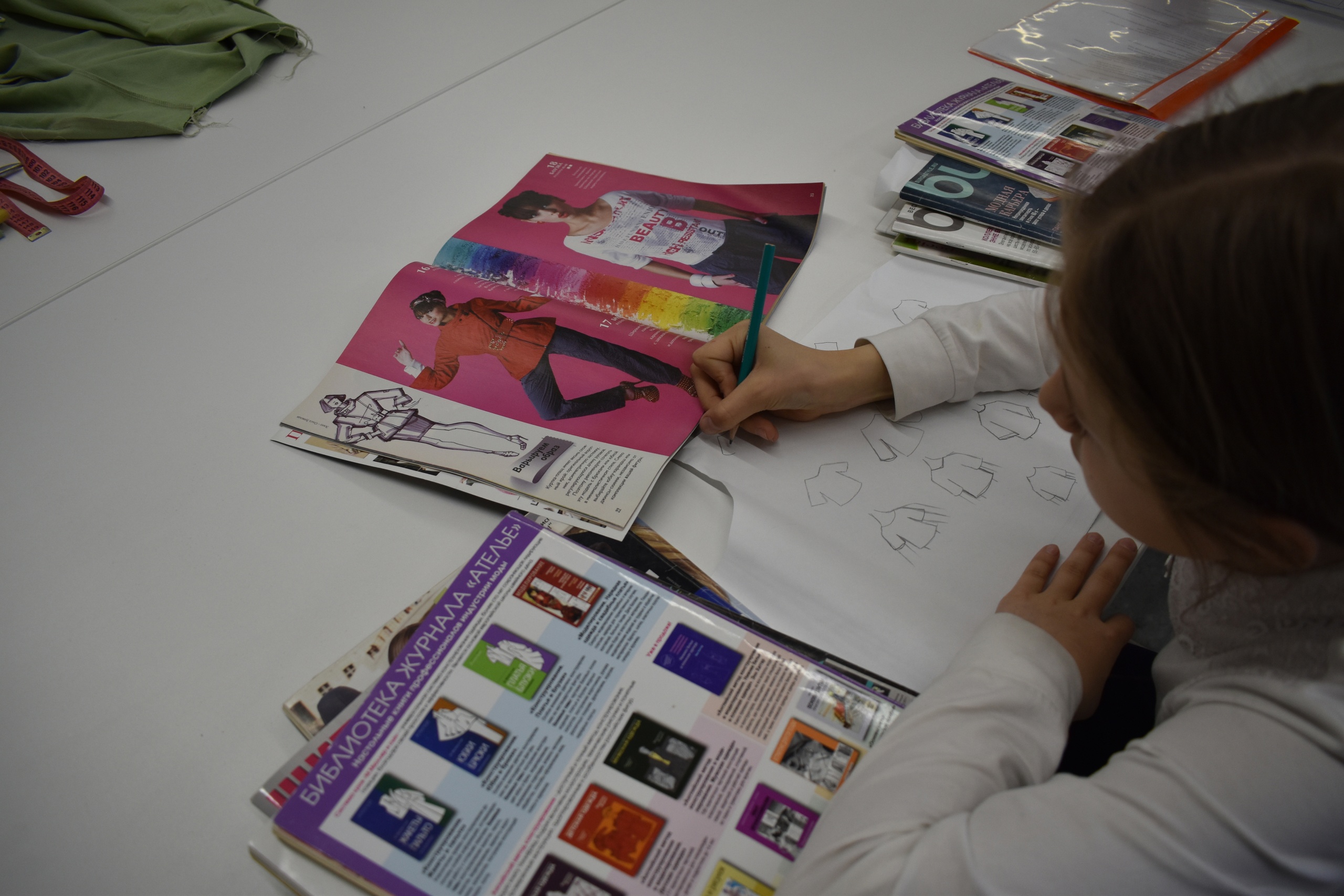 Дети учатся основам моделирования и работе с выкройками, шьют как самые простые изделия – шапки, футболки, так и более сложные - блуза с карманами, худи, спортивные костюмы.