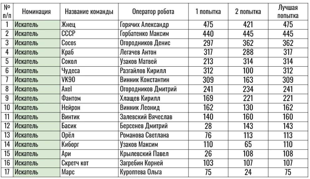 1 место – Горячих Александр с роботом «Жнец» – ЦОиПО, Верхняя Пышма;
